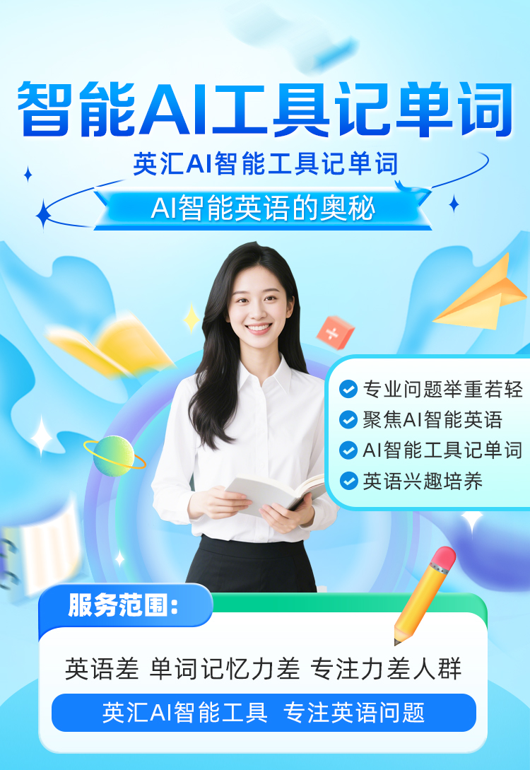 你好,我们是英汇AI课堂,专注智能Al工具记单词,辅助记单词效率快速提升!适用于12-18岁学生群体。